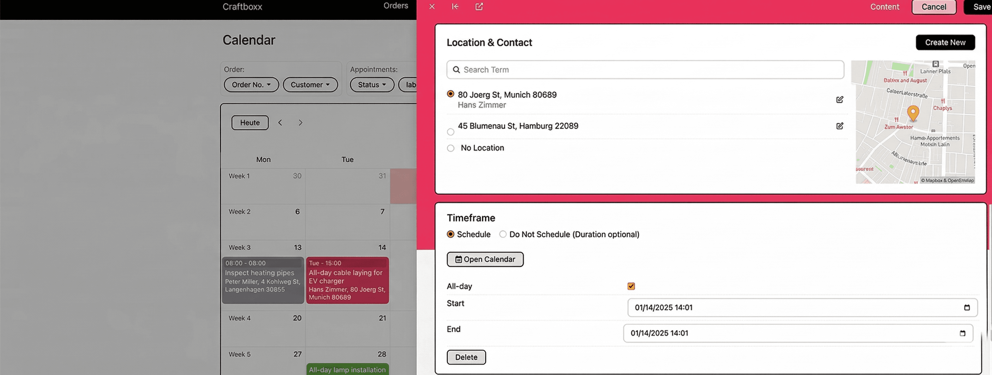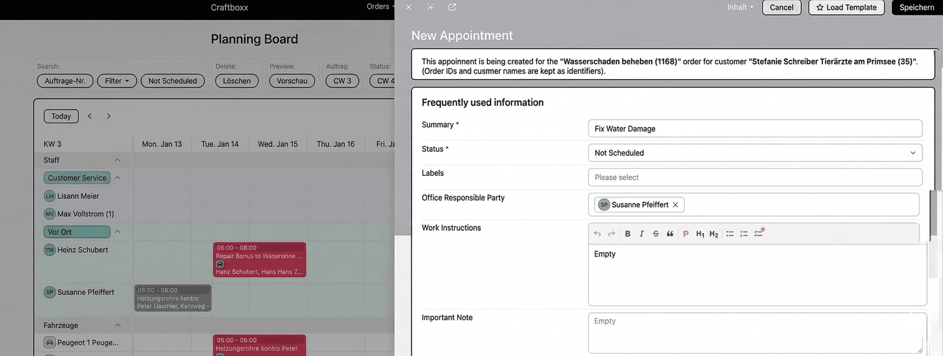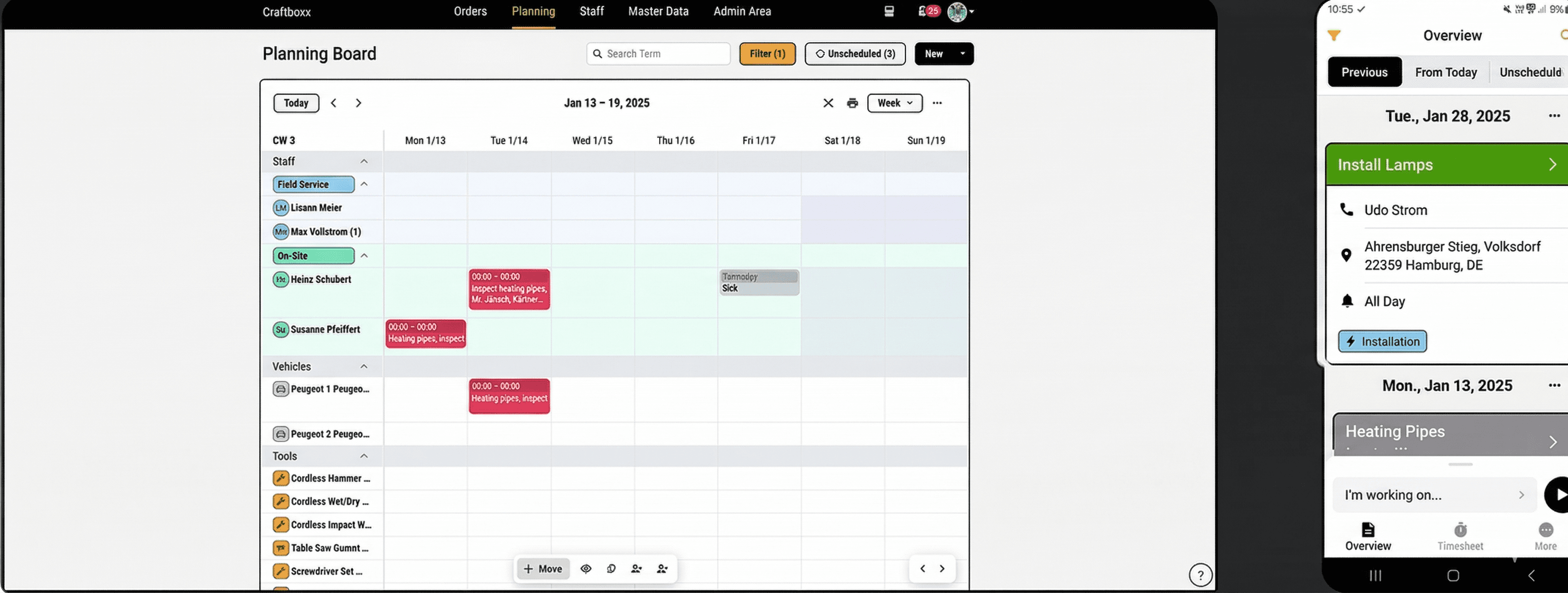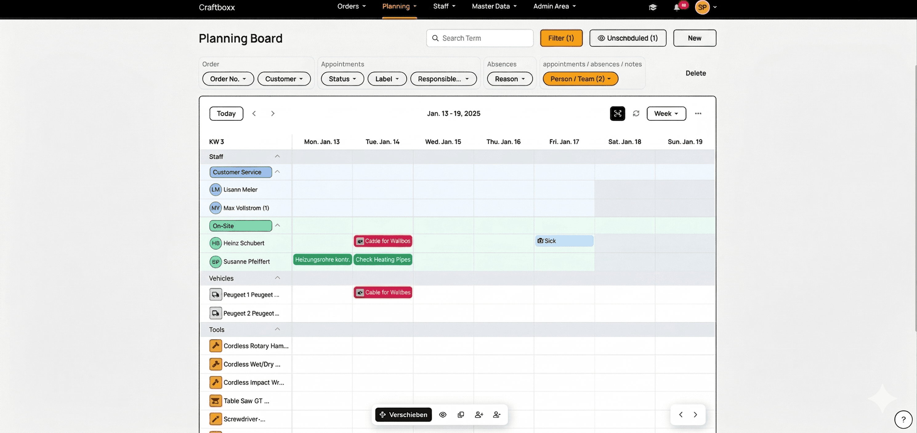 Craftboxx is the right tool to plan your appointments digitally. Use our digital schedule board to plan all your jobs and keep things organized.
