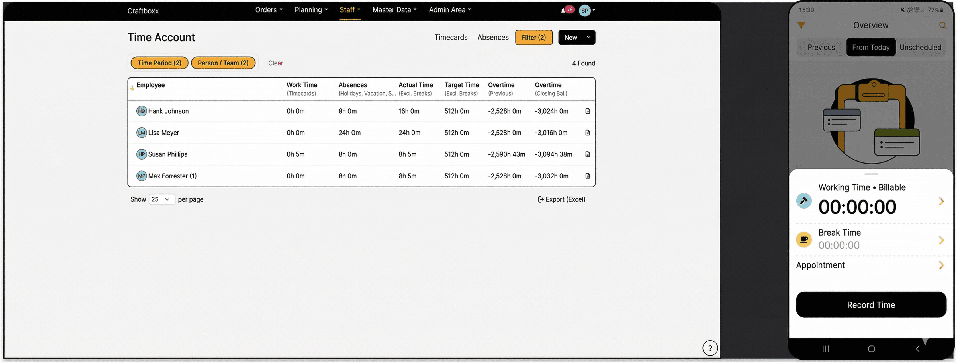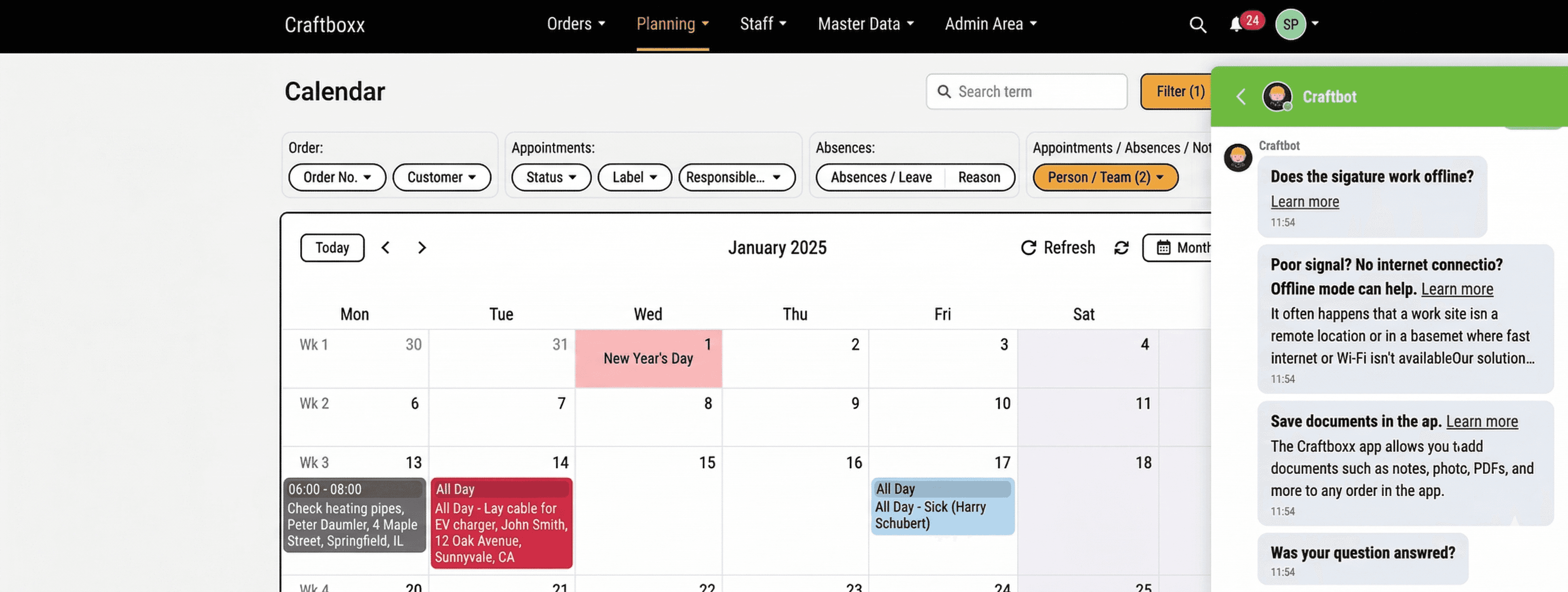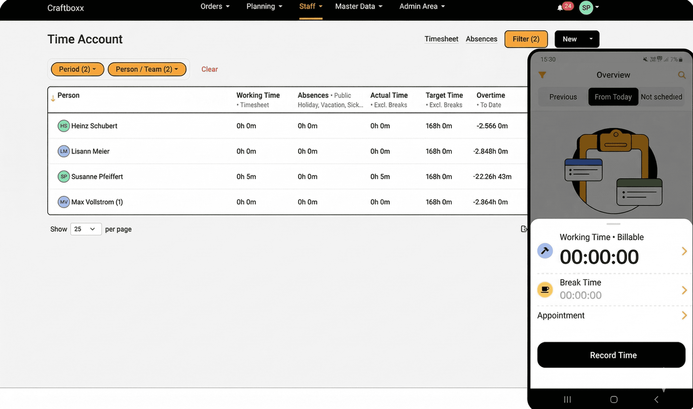 Are you looking for a time tracking tool that’s simple but still has enough options for what you need? Craftboxx combines an easy time tracking app with a clear overview in the Planner. It’s perfect for the crew, at a customer’s place, or on the road. And it’s just as good for planning in the office.