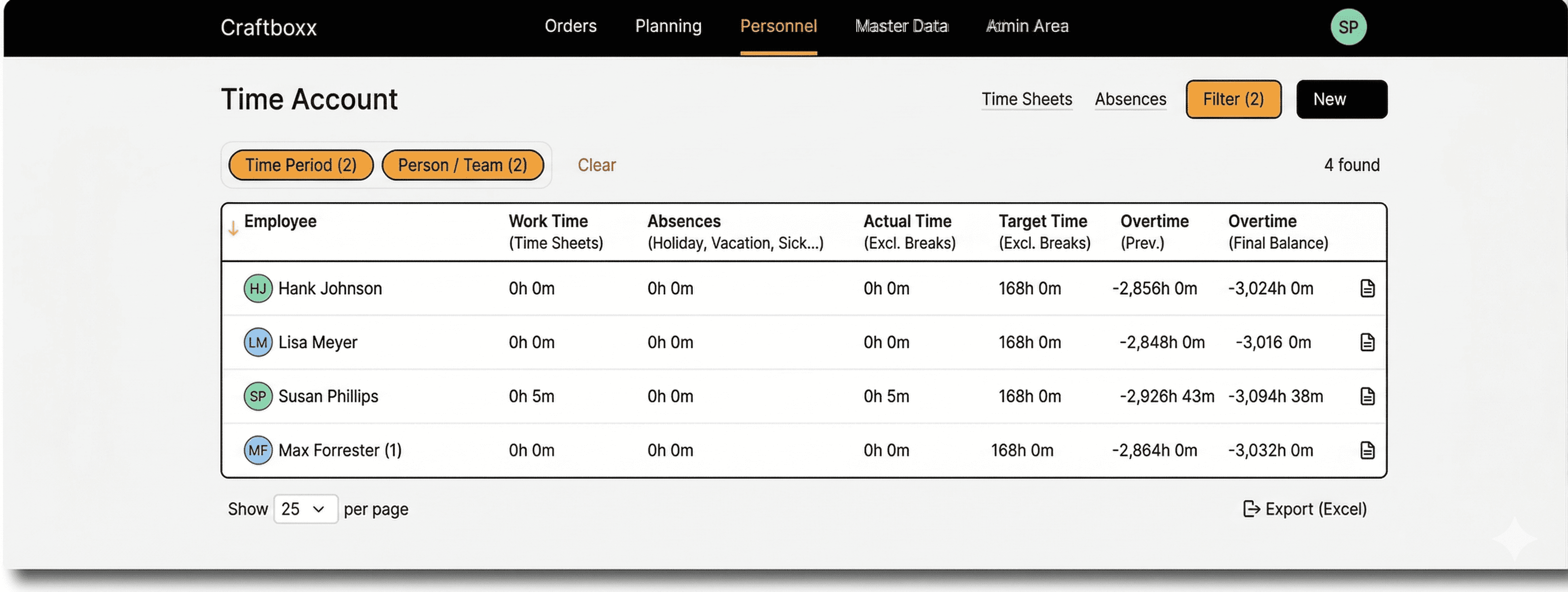 The hours overview shows you exactly where your team stands. You can see open capacity or overtime at a glance. This makes talking to the team and planning much easier.
