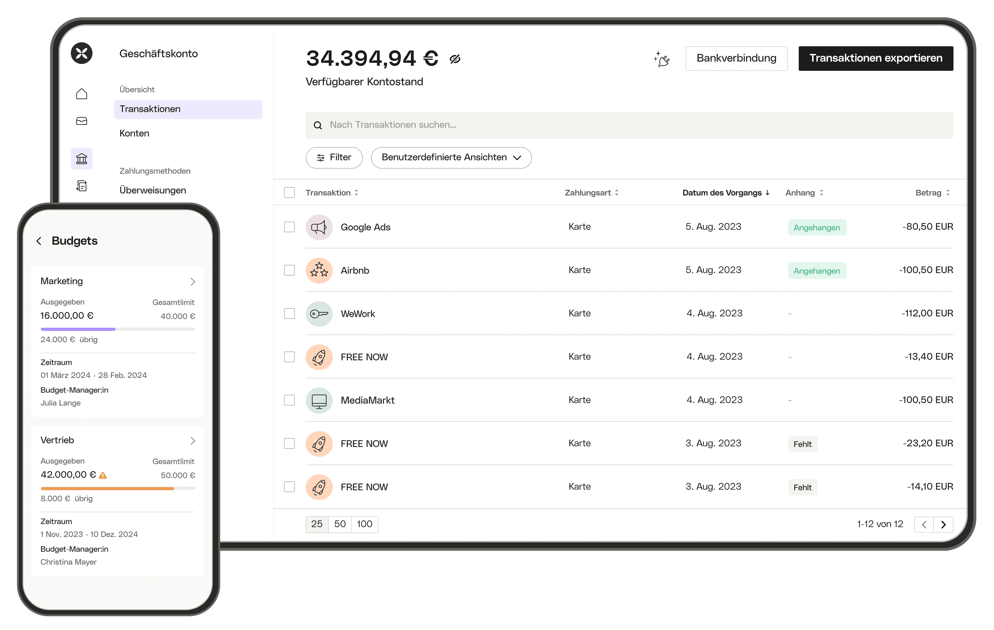 Alle Business-Banking-Funktionen plus Finanzierungen, Rechnungs- und Ausgabenverwaltung & automatisierte Buchhaltungsprozesse in einer App. Mit persönlichem Kundenservice.