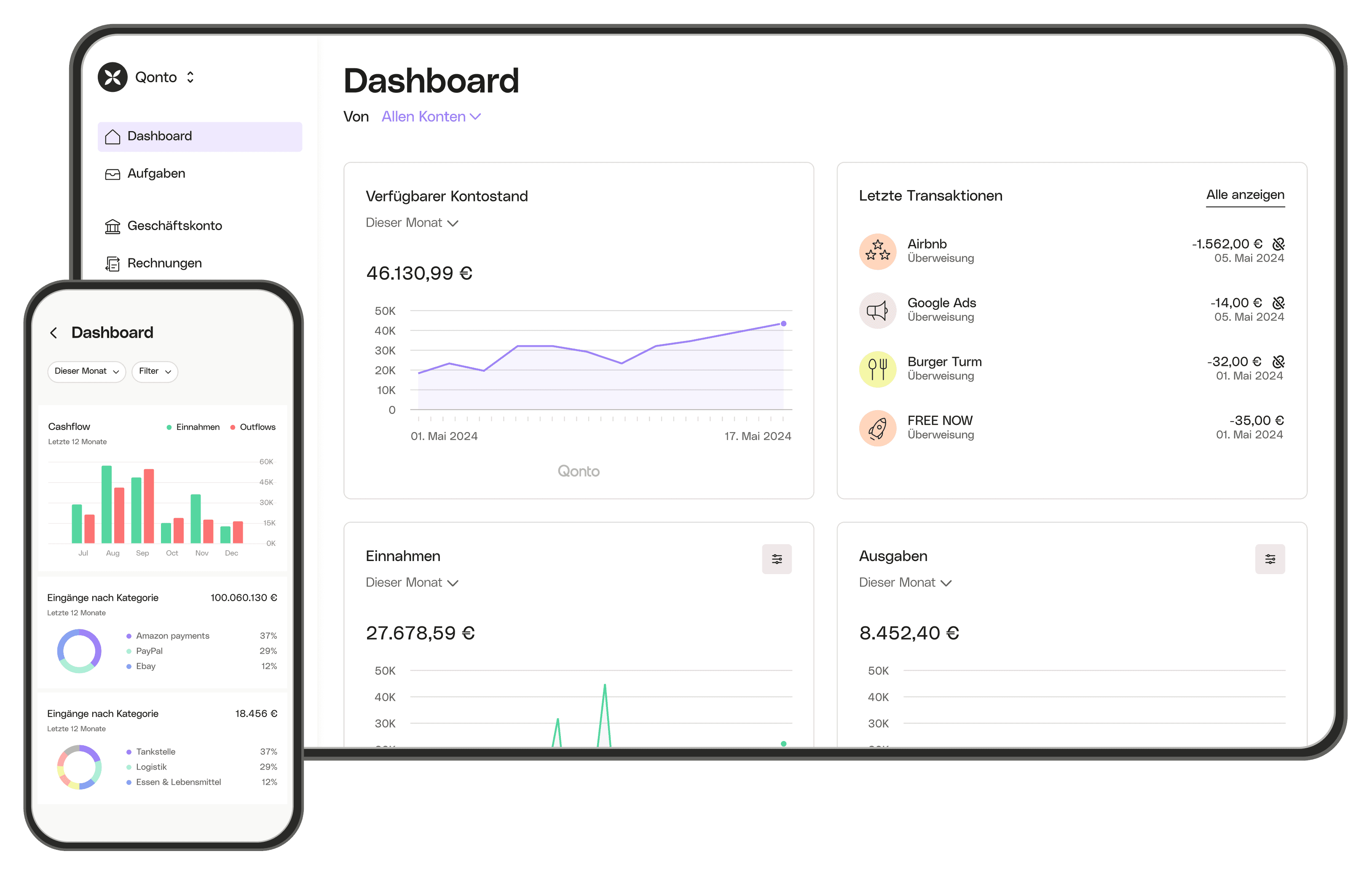 Qonto ist das smarte Geschäftskonto für Handwerksbetriebe. Es vereint schnelles, unkompliziertes Online-Banking mit innovativen Finanztools. Mit Qonto kannst du deine Finanzen vollständig digital verwalten. Zeitsparende Buchhaltungs-Tools und Automatisierungen machen deine Finanzplanung einfach und übersichtlich.