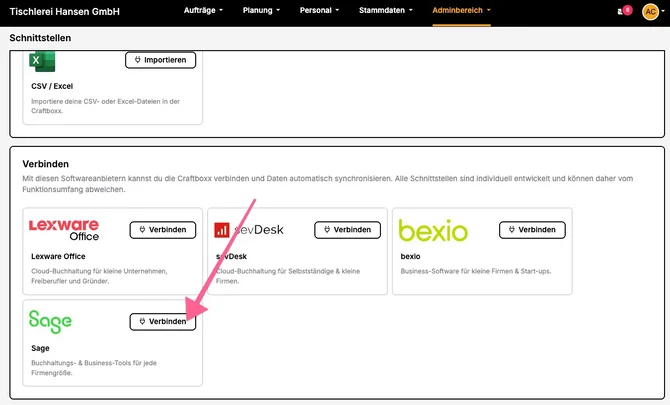 1. Wie verbinde ich Craftboxx mit Sage Active?