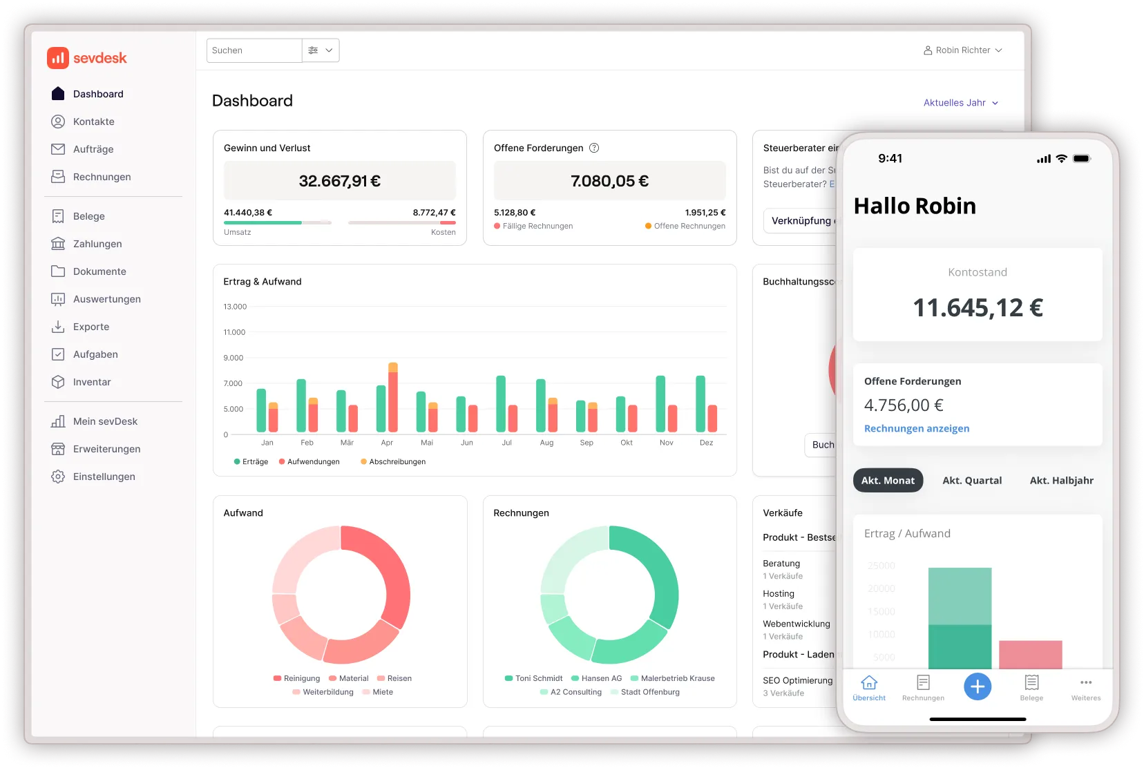 Die Buchhaltung fürs Handwerk. sevdesk macht deine Buchhaltung digital, einfach und effizient. So schreibst du Rechnungen & Angebote mit wenigen Klicks, erfasst und verwaltest Belege und behältst den Überblick über Finanzen & Steuern.